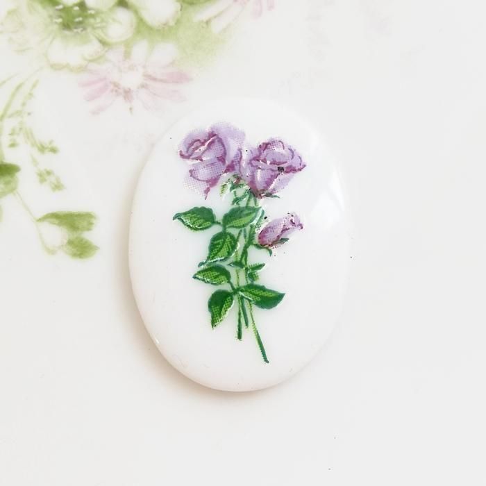 ヴィンテージ パープルローズ フラワー カメオ カボション オーバル 40x30mm【1個】