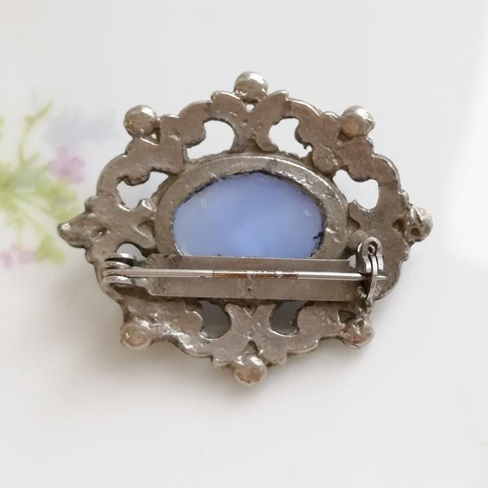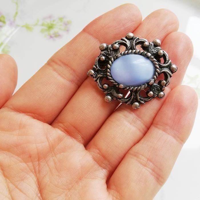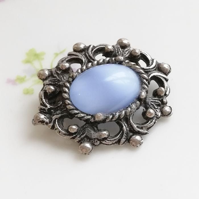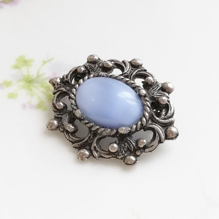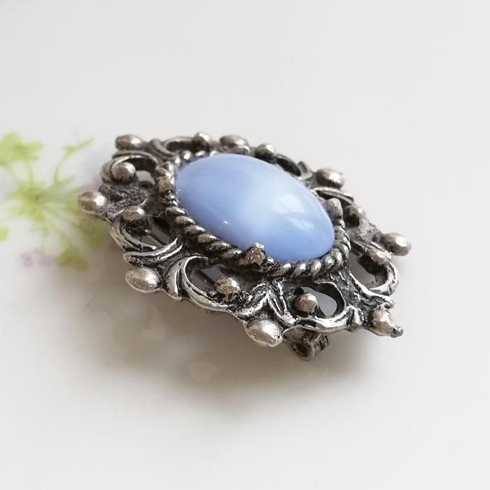 Unsigned Beauty アンティークシルバートーン ミルキーブルー ムーングロウ ブローチ