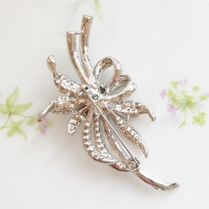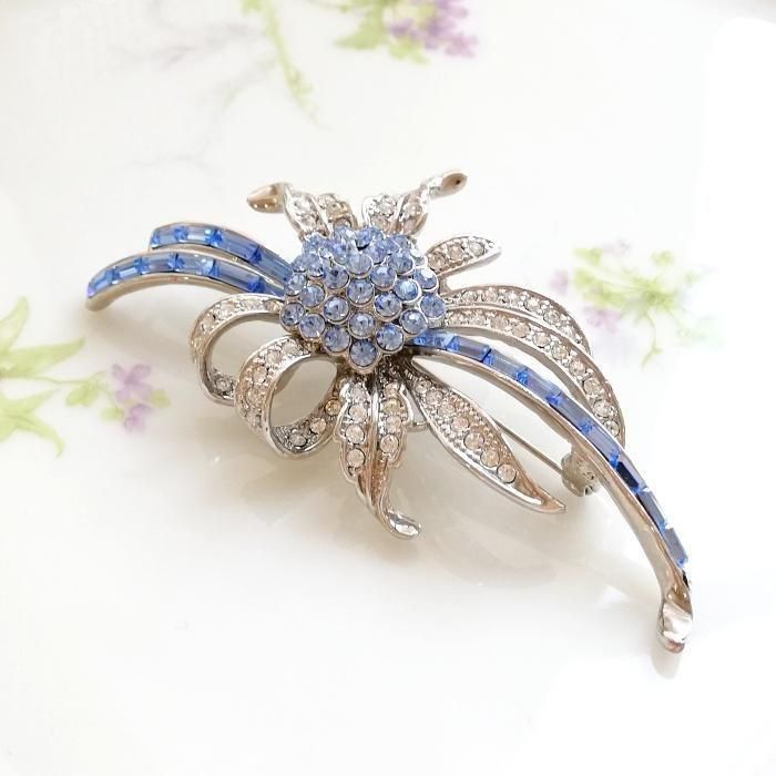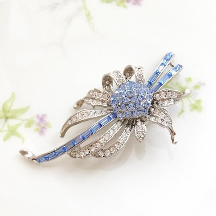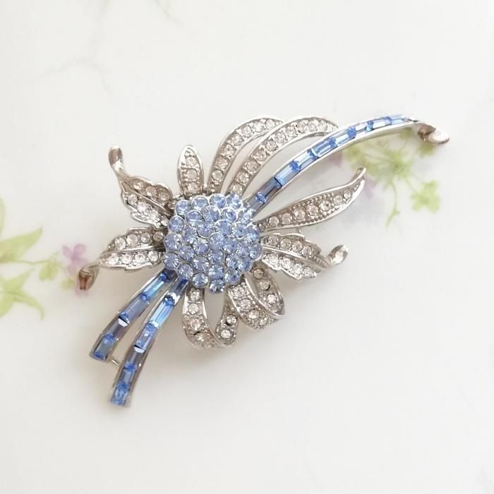 ブルー&クリアラインストーンのフラワーモチーフのブローチです。
